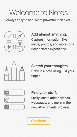 The native Notes application gets a massive upgrade. You can add almost everything to it. You can grab data such as maps, photos or draw your own stuff using the newly added Sketch menu. Select the desired tool, pick a color and use your finger to illustrate a note.