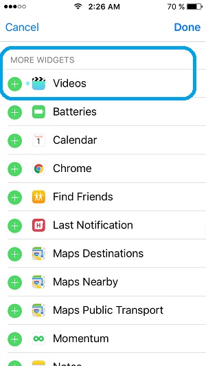 Swipe-right from the Lock Screen to unveil the Widget view and scroll all the way down until the Edit button. Tap it and you’ll notice the new Videos shortcut featured at the top of the More Widgets list. The blue dot next to its name signals that it’s a new addition.