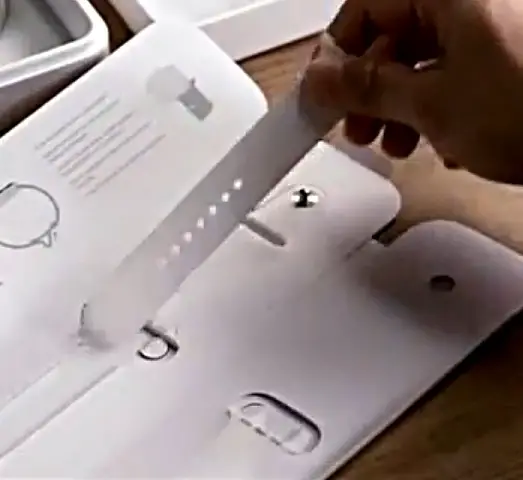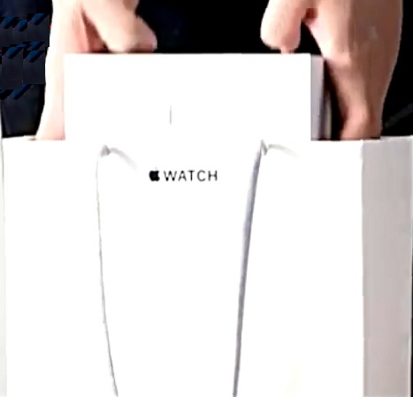 1 & 2 – The inside casing looks like a white cube with rounded corners. It splits in two halves to reveal the Apple Watch.