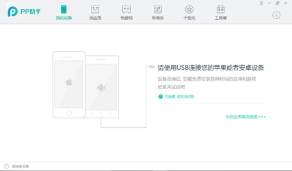 Step 7: The Pangu tool interface opens and searches for a connected device. After it detects your iPhone click the green button to deploy the Pangu app on your iOS device.
