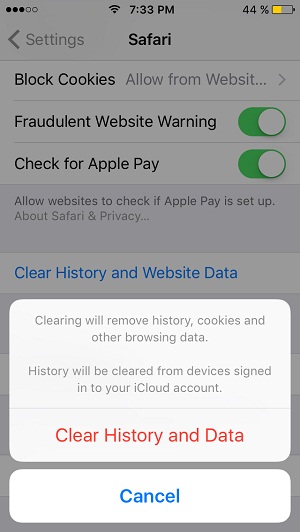 Tip: Open Settings and browse for Safari. Open it and scroll for the Clear History and Website Data option. Tap it and hit Clear History and Data again to confirm your deletion.
