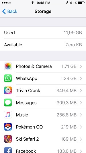The first thing that you have to do when considering to free up the load on your iOS device is to check which apps are eating up the most of your storage capacity. This is easily achievable from the same Settings menu described above, by tapping on Manage Storage. The Storage screen opens up and a list of apps is displayed, in descending order. The software with the highest impact on the storage capacity is listed first. Now you can start the cleanup: