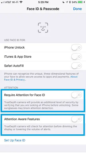 Face ID Attention Awareness Features
