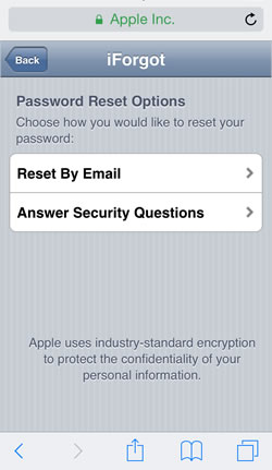 4. Tap on Answer Security Questions instead of selecting the Reset By Email option.