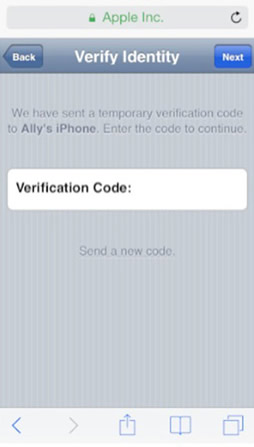 6. Type the temporary Verification Code just received from Apple and go for Next, one more time.