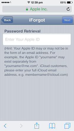 3. Type your Apple ID (that’s the email address you’ve associated with your Apple account, when you initially created it) and tap Next.