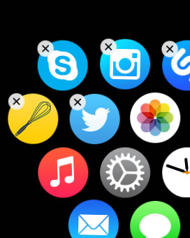 B. Light up your smartwatch and open home screen view. Tap & hold the icon of the app that you plan to hide until the bubbles start to shiver. Now, hit the “x” available in the top-left corner of the icon. Confirm deletion and you’re done. This command removes the application only from your Watch. It remains available on your paired iPhone and also in the installed apps list, within the Apple Watch app on the iOS device!