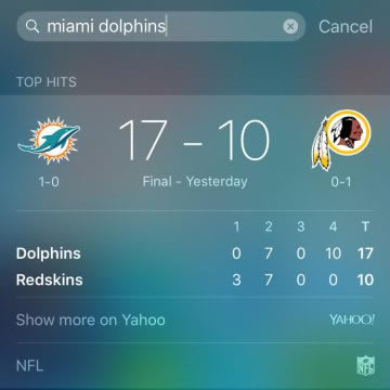 You can also quickly search for weather, but I don’t see anyone using this feature too much, because it’s much easier to swipe down for your Notification Center and grab the latest weather info from one of the apps that are providing forecasts via widgets.
