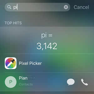 – Mathematic constants such as “pi” are automatically recognized by your iOS device. This means that you can perform operations like: pi times 5, typed as “pix5” and the result will be “3,142 x 5 = 15.708”.