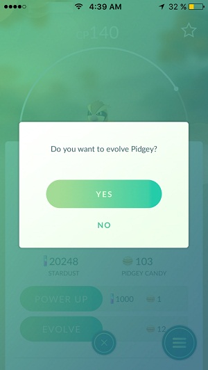 Step 5: Tap Evolve and wait until your Pokemon grows up into a stronger creature!