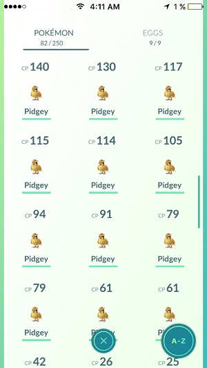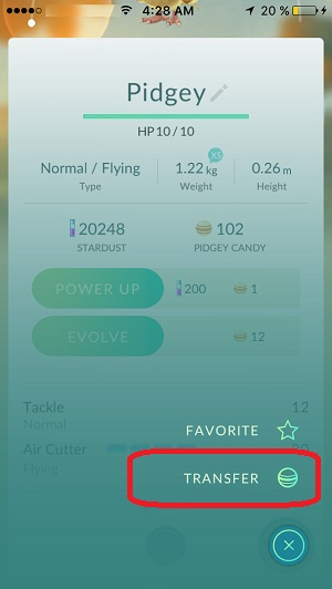 Fact: That’s why you have to catch all Pokemon that spawn nearby. No matter how low the CP is you still get one Candy for every single creature transferred to the Professor. Don’t worry about filling up your Trainer bag because you can empty it asap.