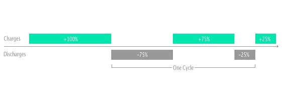 Fact: Apple Watch comes with Lithium-ion batteries which count charging cycles. A cycle is ticked when you discharge 100% of the capacity. A cycle can be divided in more charges. For example, if you burn 50% until bedtime and charge again, a full charge is counted only the second day, when the battery reaches the halfway point and you fill it again!