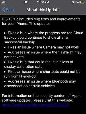 iOS 13.1.2 Full Update Log