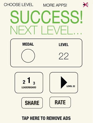 Any Level: If you’re the impatient player that want’s access to all levels and doesn’t have the time or patience to complete them one by one, you can spend $4 on an in-app purchase and unlock all levels! For another buck you can remove ads or skip an annoying level!