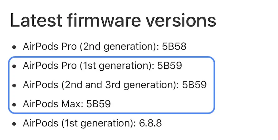 This firmware update comes after 5B58 version and is currently not available for the most recent AirPods Pro 2 model, as confirmed by this Apple support document!