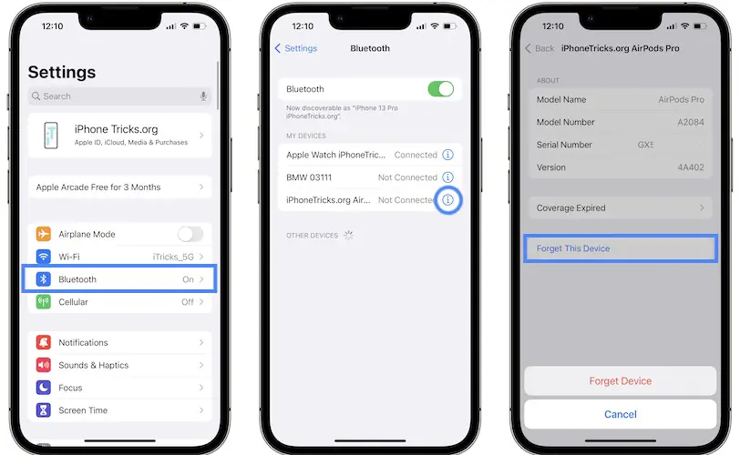 - First, unpair them from your iPhone as instructed above.