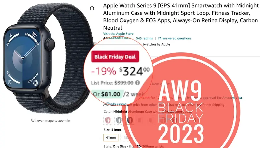 $249(Save $59 – 24%) - 2. Apple Watch 9 $324