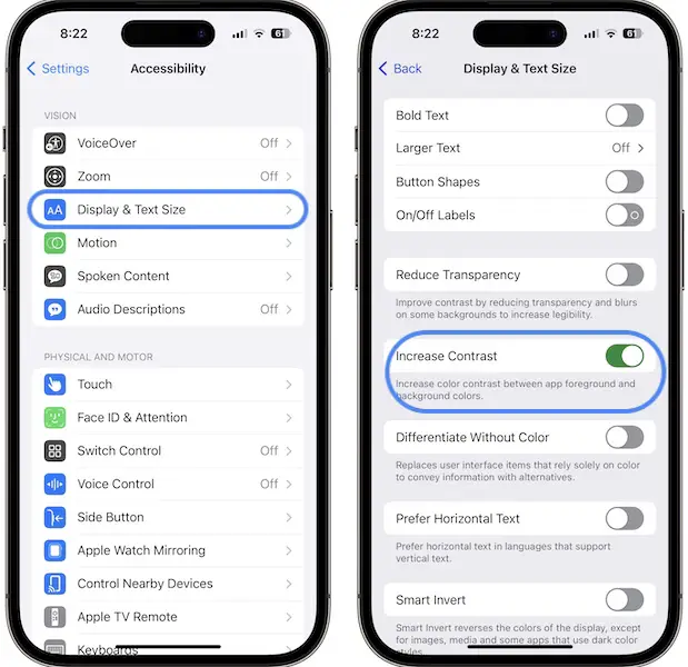 Another Accessibility option can also cause Apple Music animated covers not to work. It’s called Increased Contrast and is available in Settings -> Accessibility -> Display & Text Size. Switch it off!