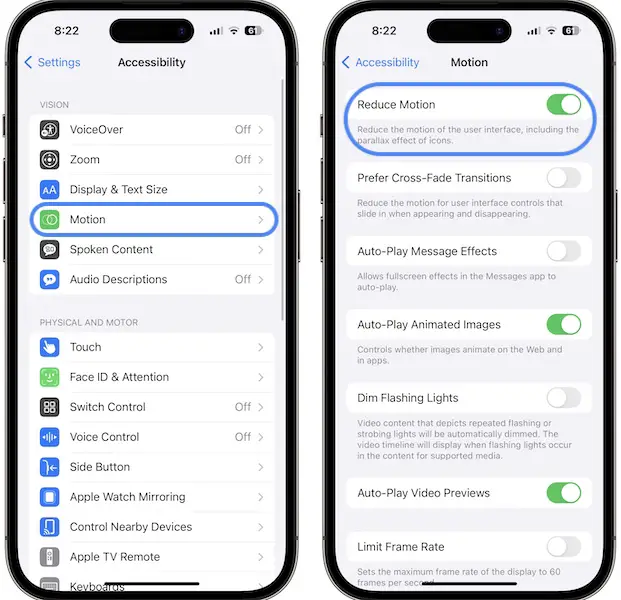- Tweak Increase Contrast and Reduce Motion accordingly.