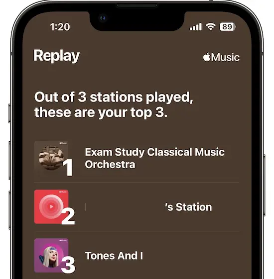“Apple Music Replay also uses a variety of other factors to determine the music that you’ve played this year such as: