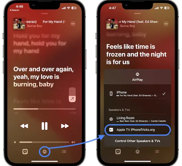 - 6. Tap the AirPlay icon, available at the bottom of the lyrics screen.