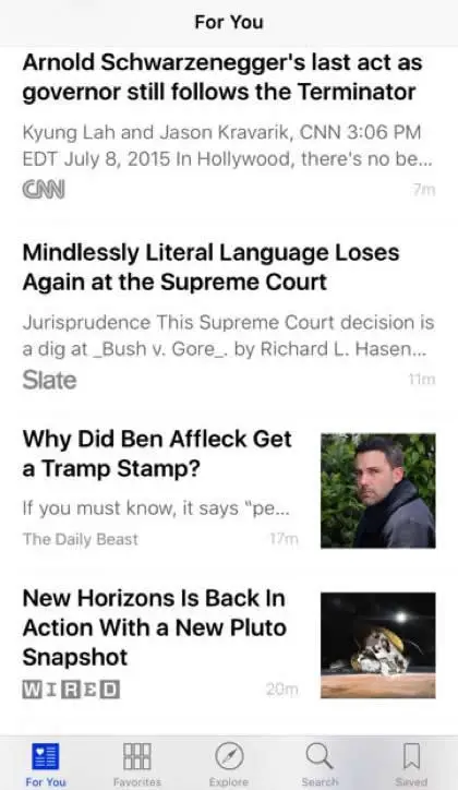 Now, you’re prompted to choose whether you wish the News to be emailed to you. Sign up if you do or tap Not Now to skip this feature. Next, the actual News app opens app. The default tab is the For You screen which displays a timeline of the latest news, provided by the sources you have chosen.