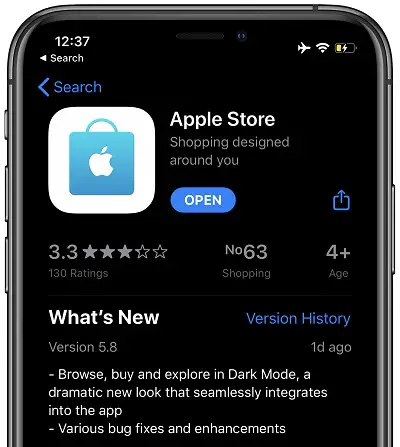 Apple Store For iOS Gets Dark Mode Update