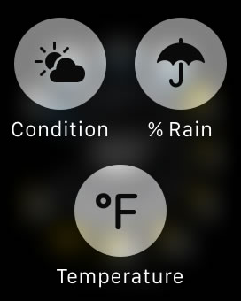 Force touch brings up an additional menu with the 3 icons: Condition, %Rain, Temperature.