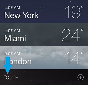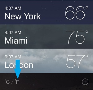 If you prefer Celsius temperature display instead of Fahrenheit or vice versa you have to tweak this also from the Weather app on your iPhone. Open it and this time check the bottom-left corner. Here you find the symbol of the two metrics. Tap the one you wish to use! This selection is automatically updated to the Apple Watch weather app too.