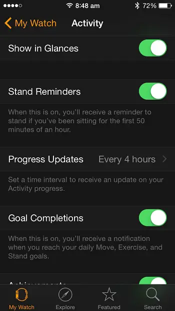 The Time to Stand! feature is enabled by default when you configure the Apple Watch activity app. However, if you aren’t a fitness enthusiast, or simply wish to reduce the amount of notifications received on your wrist gadget, you can tweak your the daily progress update and even turn off Stand reminders.
