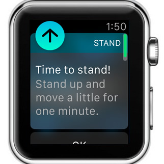 The above mentioned alerts use the taptic engine and the built-in speaker to notify you. Here is how the two prompts that you receive for standing up and task accomplished actions look like: