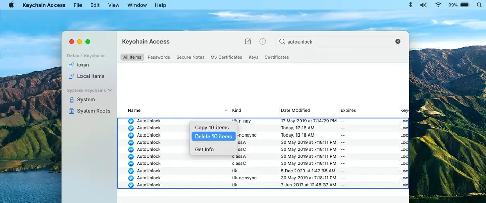 If Apple Watch still won’t unlock Macbook, you have to manually delete auto unlock configuration in KeyChain Access to force macOS to reconfigure.