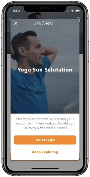 The app is free to download but comes with in-app purchase plans. However, they provide a free trial exercise. Opt for it an select a Yoga workout. Make sure that you select at least 3 rounds to have a total exercise time of at least 20 minutes. Start the workout and you’ll have your medals and stickers in no time.