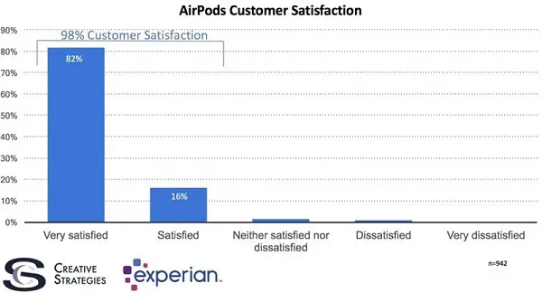 + According to the same study users are mainly satisfied by the convenience of a wire-free experience when wearing the new earbuds.