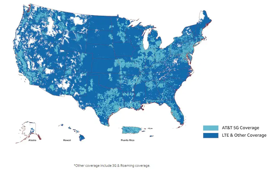 If you check the nearby AT&T coverage map you can notice that there is a 5G prominence on the Eastern coast and central America, while the West par of the US is lacking even in 3G signal.