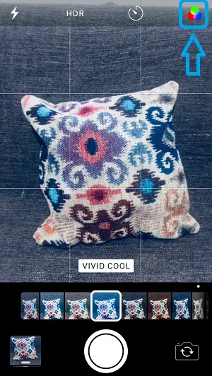 2. Tap the Filters icon available in the top-right corner of the Camera app.