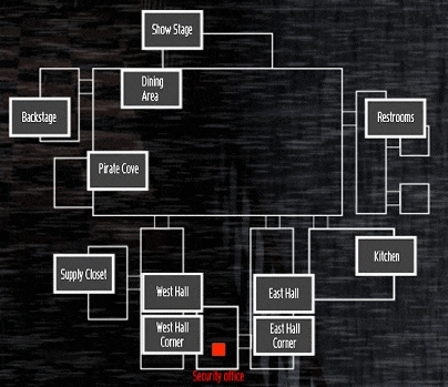 Freddie, Bonnie and Chica are normally located on the ‘Show Stage’ and that’s very they start every night. However, they can be anywhere once they start teeming at 12 am. You’ll also have to watch for Foxy, that usually escapes from the ‘Pirate Cove’ and is moving much faster as show stage trio. You literally have seconds to react, when Foxy makes a move for your office. Be ready to close the appropriate door when a robot is visible on the West or East Hall cameras.