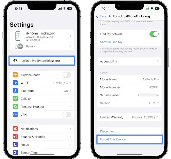 - 1. Open Settings and tap on the [AirPods name] detected at the top of the screen or, go for Bluetooth and tap the ‘i’ icon, next to the AirPods name.