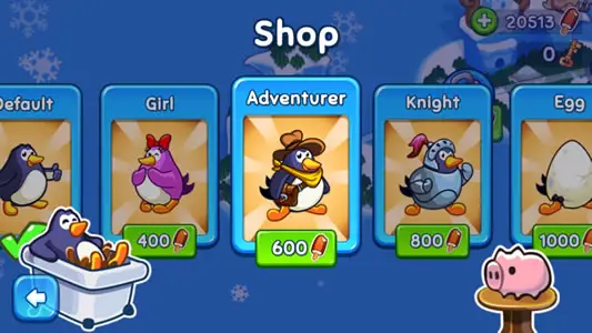 5. Visit the Shop and trade your ice cream collection for additional characters. You can choose between: Default, Girl, Adventurer, Knight, and Egg.