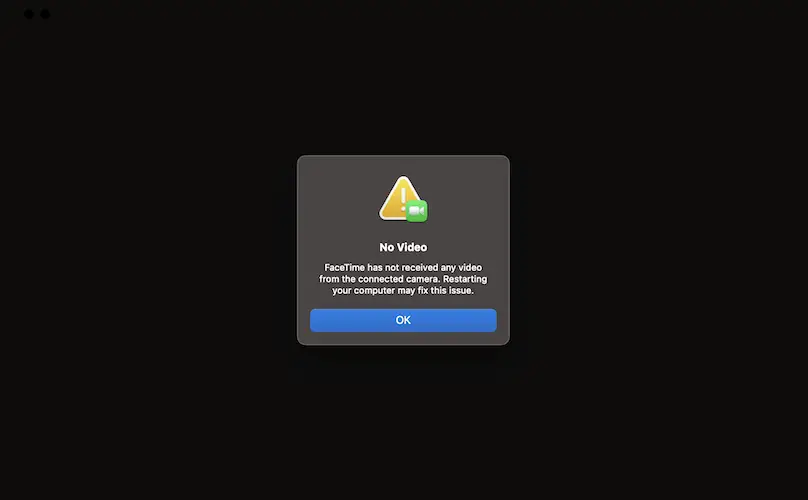 FaceTime has not received any video from the connected camera? Restarting your computer might fix this issue.