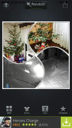 This image editor as most iOS apps is very user-friendly. When you open it, you’re prompted to pick a Layout for your collage. There are hundreds of models to choose from. If you don’t feel to inspired you can tap the Random button available at the top of your screen.