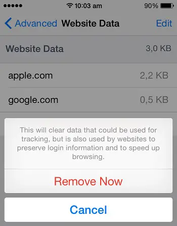 If you wish to keep your Safari browsing history intact, use a somewhat hidden iOS setting that allows you remove only the stored website data. This option is found in Settings -> Safari -> Advanced -> Website Data. Here you find a list with Safari’s data packages for all web pages visited by you that use caching. You can see how much storage is using up every website. If you scroll all the way down, you’ll find the Remove All Website Data command. Tap it and you’ll get a prompt which explains what data you’re about to erase. Hit Remove Now and Website Data will display 0 bytes.