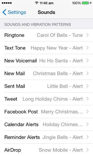Please note that you have to download these winter holiday tones on your computer or notebook. Next, you need to connect your iPhone to your desktop or laptop and use iTunes. Drag and drop the downloaded .m4r audio files in the iTunes’ Tones section and Sync to upload them to your iOS device. The final step is to unlock your iPhone, tap on Settings -> Sounds and accommodate your new Christmas and New Year sounds!