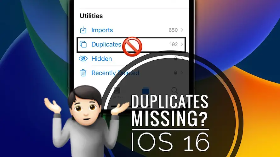 Update 2: The Duplicates not showing issue sorts itself out within 24 – 48 hours after updating! Apparently, iOS 16 needs time to index and compare all photos. (Confirmed by Michael, Jim and others.)