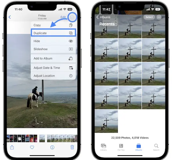 To make sure that you have duplicate photos on your iPhone you can use another iOS 16 feature that allows you to easily duplicate an image: