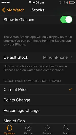 Watch Stocks App Settings