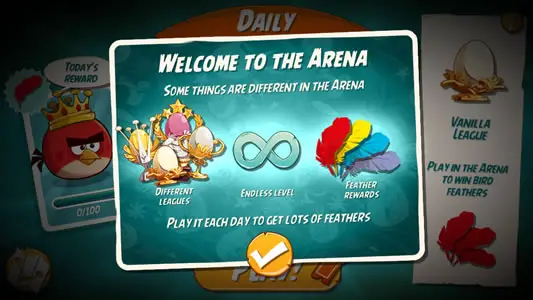 – Multiplayer Mode: Last but not least Angry Birds 2 offers you the option to compete with players from all around the world. Compare your slingshot skills in the Arena. Here you play and complete stages, until your run out of birds and spells.