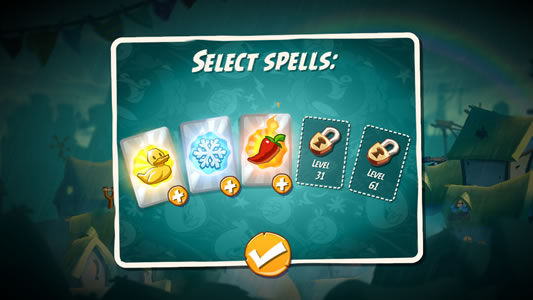 – Cast Spells: Yes, you can use magic too. They’re also released with the help of the slingshot. However, you don’t need to aim, because they affect all objects from the stage. Spells either destroy your enemies or weaken their positions, so that your bird-attacks will inflict significantly more damage. You can choose from Golden Ducks, Blizzards, Hot Chilis, and many other magic help!