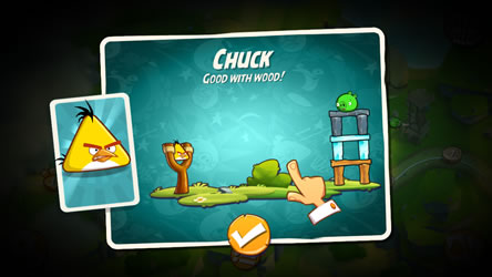 – Chuck: is the fasted bird of your squad and the second character that you’ll unlock. He’s mainly efficient against obstacles made out of wood. His special ability is a missile-like acceleration before the impact, which increases the amount of inflicted damage.
