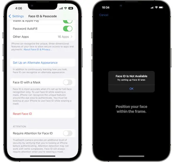 Another troubleshooting step requires you to reconfigure Face ID from scratch.